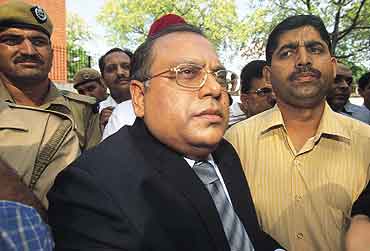 The Sitting Judge is Justice Shamit Mukherjee. The Outlook Bureau, “Judge Dread”, reveals Mukherjee was partial to attractive women and partying. All while his Wife was confined to a wheel chair. Later he was arrested for an alleged involvement in a land scam.