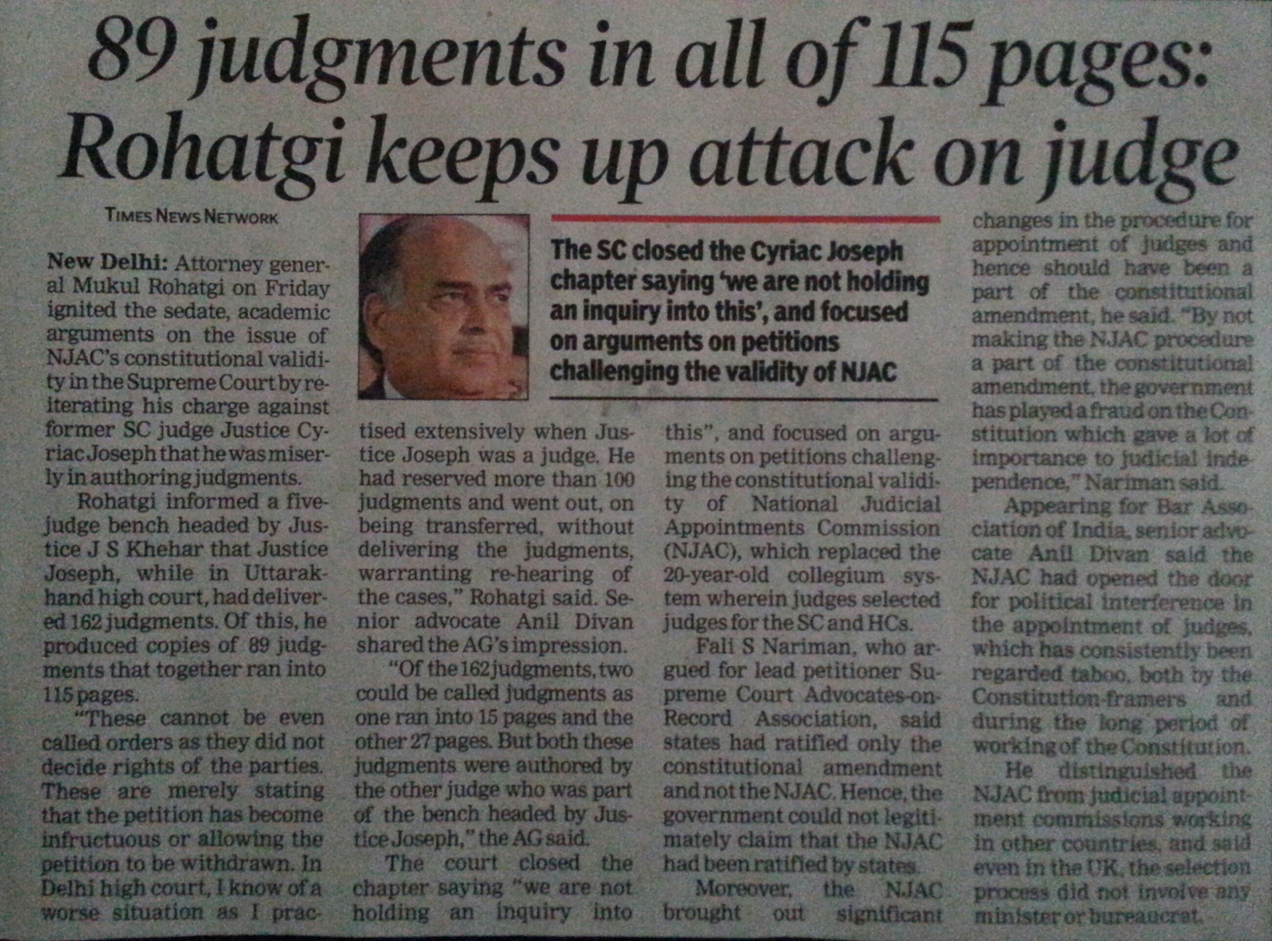 I know a corrupt judge when I see him. You are almost there, Mr. Rohtagi. Don’t forget Hon’ble Justice Joseph’s BenchMate in almost 150 orders/judgments. The one who saved the President in Purno Agitok Sangma v. Pranab Mukherjee, (2013) 2 SCC 239. The one who became a Chief Justice of India too. “Are you watching closely?”