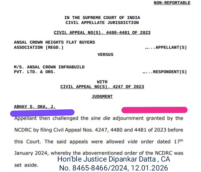 – Hon’ble Justice Dipankar Datta, Ansal Crown Heights Flat Buyers Association (Regd.) v. M/s Ansal Crown Infrabuild Pvt. Ltd., [Civil Appeal Nos. 8465-8466 of 2024] decided on 12.01.2026.