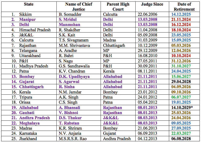 What if we count too those who are Senior-Most in our 25 HCs after its so-to-be Acting CJs or Present CJs? Well, following Js, if elevated to SC, can be CJI No. 59: Joymalya Bagchi J (Calcutta, 03.10.1966), R.V. Ghuge J (Bombay, 09.07.1966), M. Sundar J (Madras, 19.07.1966), M.C. Tripathi J (Allahabad, 21.06.1966), R. Devdas (Karnataka, 15.05.1969), A. Kumar J (Patna, 01.10.1966), Sindhu Sharma J (J&K, 10.10.1972), S.A. Dharmadhikari J (MP, 08.07.1966), Lisa Gill J (P&H, 17.11.1966), S. Shyam J (Gauhati, 12.06.1969), B.C. Routray J (Orissa, 01.02.1970), A. Bhansali J (Rajasthan, 15.10.1967), A.M. Mustaque J (Kerala, 01.06.1967), A.Y. Kogje J (Gujarat, 16.07.1969), Vibhu Bakhru J (Delhi, 02.11.1966), A.M. Goel J (HP, 10.01.1969), B.R. Pradhan J (Sikkim, 19.10.1966), P.P. Sahu J (Chhattisgarh, 19.04.1971), P. Purohit J (Uttarakhand, 28.07.1968), S.N. Prasad J (Jharkhand, 20.06.1967), H.S. Thangkhiew J (Meghalaya, 24.12.1966), A.G. Sharma J (Manipur, 01.03.1967), R.N. Tilhari J (AP, 09.02.1969) and P.S. Koshy J (Telengana, 30.04.1967).