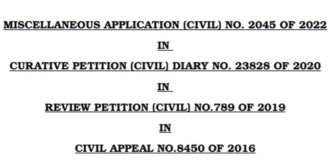 Registrar: “Curative Petitions filed were heard and disposed of in an Open Court. In this regard, Rule 2(1), Order XLVIII, S.C.R., 2O13 reads: Petitioner, in Curative Petition, shall aver specifically, grounds mentioned therein had been taken in Review Petition and it was dismissed by circulation. Since aforesaid Review Petitions were disposed of in an Open Court and not by circulation, aforementioned Curative Petitions are declined for registration…”